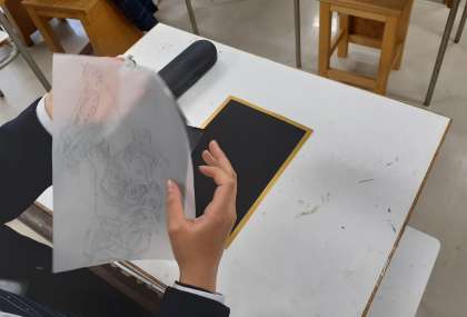原画を写す 公開日 2023/06/09 更新日 2023/06/09 できごと 3年生 美術 スクラッチ スクラッチボードに原画を写す前の作業。 まず、トレーシングペーパーに原画を写します。 根気のいる作業ですが、頑張っていますね。 トレースが終わったら、先生のチェック!(副校長)