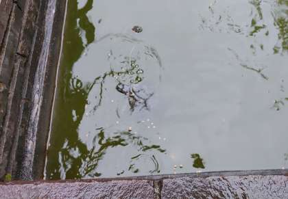 池の亀さん、2匹揃って仲良く餌を食べています。(副校長)