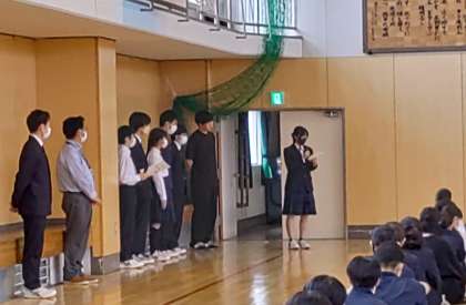 選挙管理委員長より、生徒会役員選挙について紹介がありました。 選挙の公示は明日です。