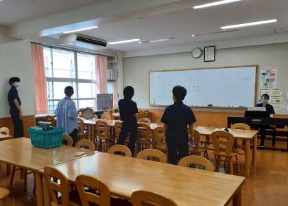 みんなで同じリズムを鳴らすのは簡単ですが、ひとりずつ順番に鳴らすのは難しかったですね。(副校長)