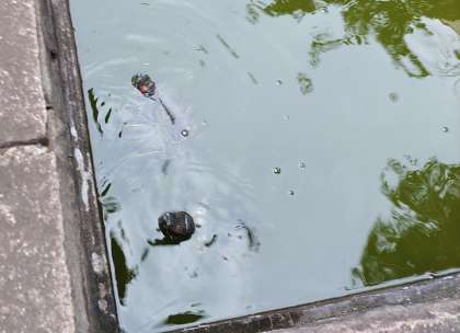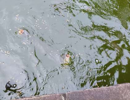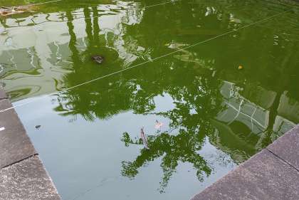 池の亀子さん、副校長の姿を見つけてこちらに泳いで来ます。なついていると思うと嬉しいですね。ひとしきり亀さんたちに餌をやった後に鯉の餌を撒きます。水面に鯉さんの口がたくさん現れ、亀さんは逃げていきます。仲良く暮らしてくださいね。(副校長)