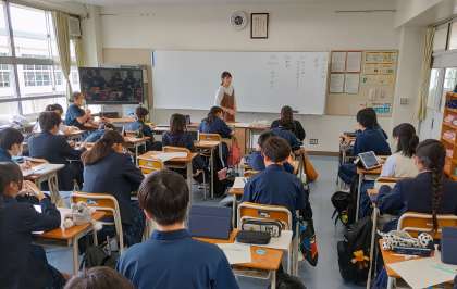 紹介された曲の歌詞から受ける印象を発表しあったり、自分ならどんなタイトルをつけるか考えています。(副校長)
