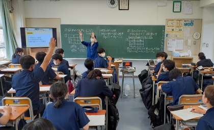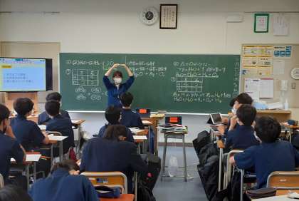 生徒の皆さんの質問に、教員も全身でこたえます。(副校長)