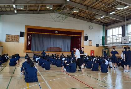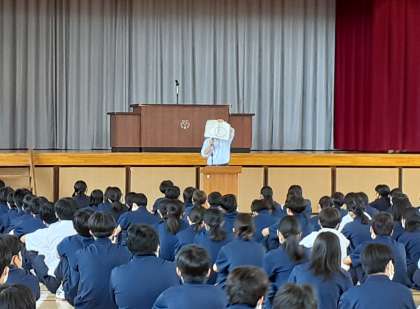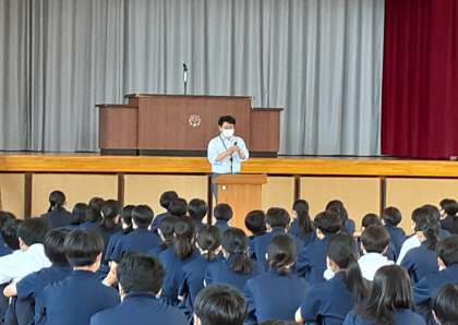 今朝の体育館の集合は前回の反省をいかしたものになっていました。特に、3年生は5分前行動を心がけ、下級生の手本となっていました。