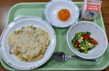 冷凍みかんを出した日は、栄養教諭も天気が気になるところですが、今日は暑いので冷凍みかんにして正解ですね。