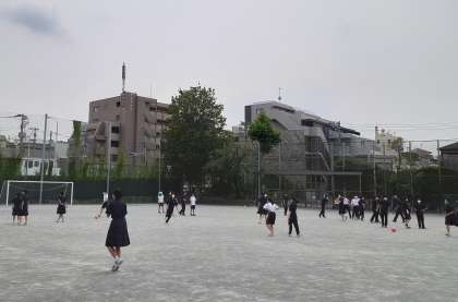 校庭の様子です。 ドッジボール、サッカー、鬼ごっこ、先生とおしゃべり