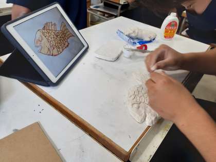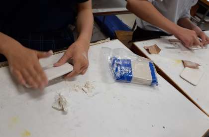 乾いた粘土は紙ヤスリで削ってきれいな形にできるのですね。(副校長)