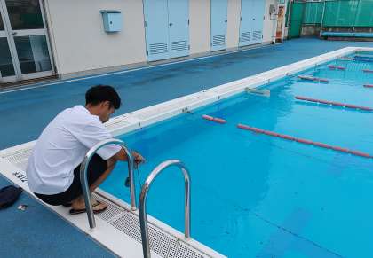ラッシュガードについてはフードがある場合は引っかけ防止のため中に折りこんで着用するよう話しています。(副校長)