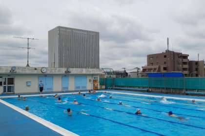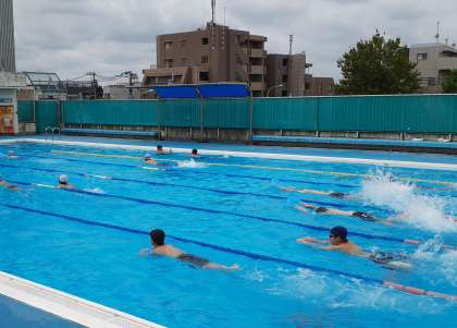 水泳授業のルールを確認したり、プールの水の深さを確認したりしてから泳ぎました。