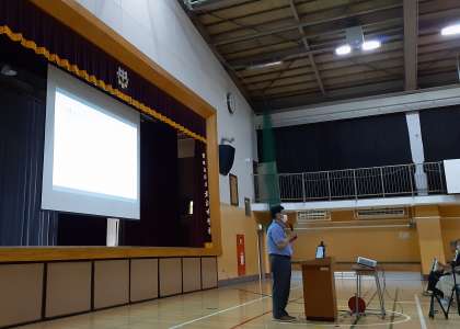 校長から、対話を大切にというテーマで話をしています。(副校長)