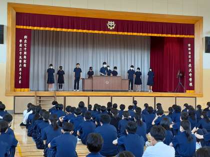 生徒朝会が始まりました。