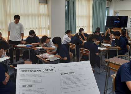 各クラスで学級委員が司会をして1学期の振り返りをしています。