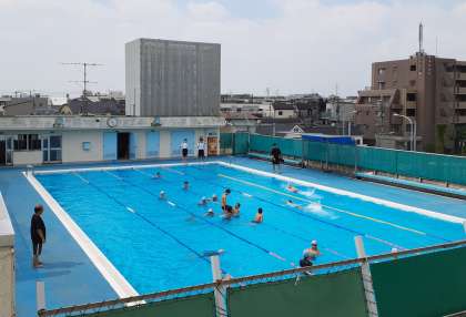 奥のレーンでは、テストをしています。待っている生徒を学校包括支援員が見守っています。(副校長)