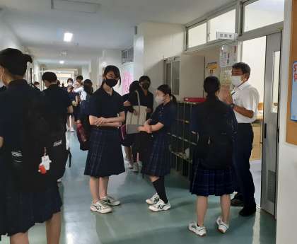 通知表を受け取った生徒の皆さんが教科担当に質問しています。
