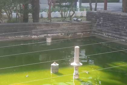 池の亀さんたち、今朝はなかなか近づいてきません。休み明けだからでしょうか?(副校長)