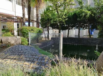 亀さんの甲羅干しのスペースを確保しつつ、池の外には出られないようになっています。