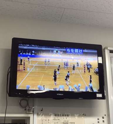 バレーボール部の関東大会を職員室に映して応援!2戦2勝で明日は準決勝、決勝に臨みます。頑張れ!バレー部!