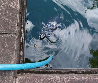 今朝の亀さんたち、元気に餌を食べに来ました。すねている訳ではなかったようです。(副校長)