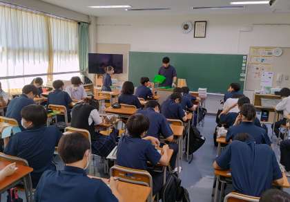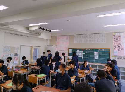 2学期の目標を書いて掲示したり、キャリアパスポートを記入したり、修学旅行のしおりを製本したりしています。(副校長)