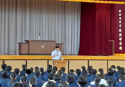 今日も1分前に静かになり全校朝会が予定どおりに始まりました。