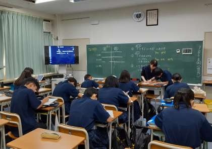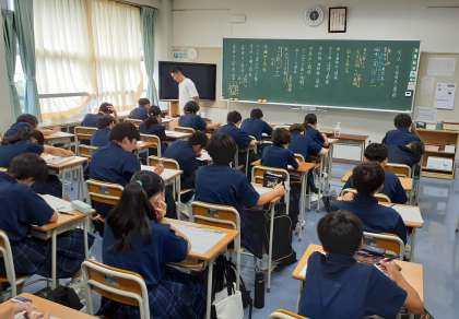 夏休みの課題の漢字50問、集中しています。みんなよく勉強して臨んでいると教科担当が話していました。