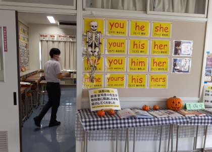 英語室がハロウィン仕様に変わります。 生徒の皆さん、お楽しみに。(副校長)