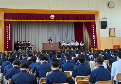 演説を真剣に聞く生徒の皆さんの態度も立派です。