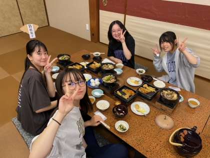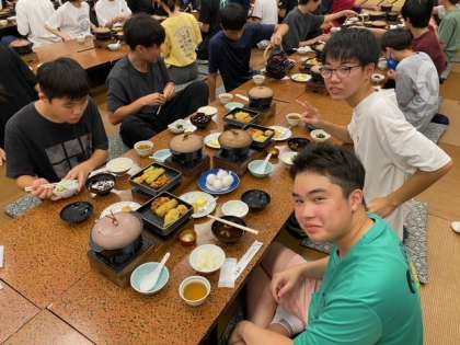 初日の晩御飯の様子です。たくさんおかわりする様子も見られました! 今日一日、お疲れさまでした。
