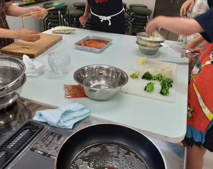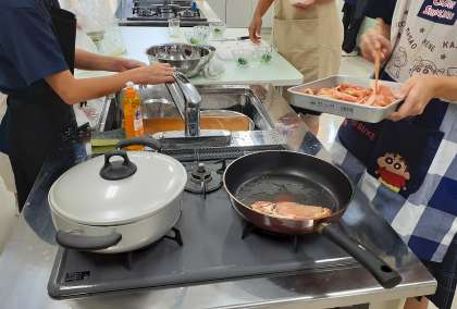 協力 公開日 2023/09/15 更新日 2023/09/16 できごと 1年生 家庭科 調理実習 メニューは 豚肉の生姜焼きと千切りキャベツ、青菜のおひたし、うさぎ型リンゴ です。 中学校初めての調理実習です。 どの班もよく協力していました。 始め、エアコンの効きが悪くご迷惑をおかけしました。 設定ミスが原因で故障ではありませんでした。 (副校長)