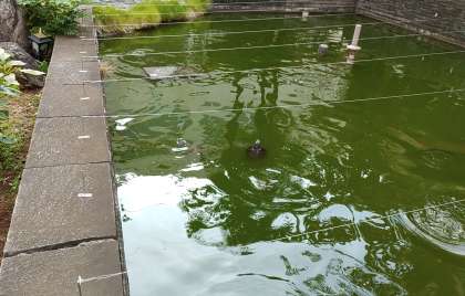 そこで、鯉さんたちの餌を先にやったところ、やっと亀さんが頭を出しました。元気で安心。