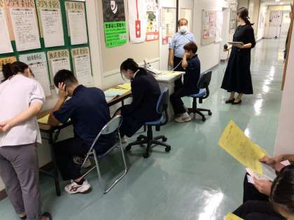 10月3日・4日に事前訪問に伺わせていただけるかどうか、確認をとっている様子です。先日のマナー講習会で学んだ「電話応対の仕方」を生かして、上手にできたでしょうか。みんな緊張と不安でドキドキしながら電話をかけていましたが、事業所の方々がやさしく対応してくださり、生徒たちもとても助けられたようです。