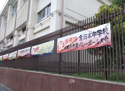 PTAより、バレボール部の全国大会準優勝横断幕を寄贈していただきました。ありがとうございます。(副校長)