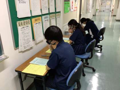 職場体験でお世話になる事業所へのご挨拶を電話で行っています。