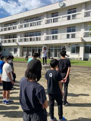 開園式の様子です。 今年度の代表校の弦巻中学校の校長先生の話を 聞いています。 おおぐま学級担任