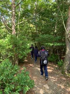 木漏れ日の中、約2Kmのハイキングを行いました。