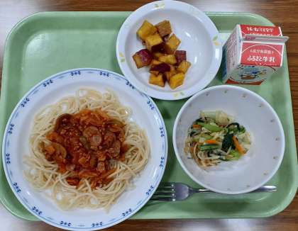 キャンディーポテトはサイコロ状にカットしたさつまいもを油で揚げてから、熱いうちに砂糖、グラニュー糖、バターで作った蜜にからめます。柔らかくて食べやすかったと思います。栄養教諭はこの前のいもけんぴのような固いものもしっかり噛んで食べてもらいたいと話していました。それにしても、固いさつまいもをカットするのは大変でしたね。