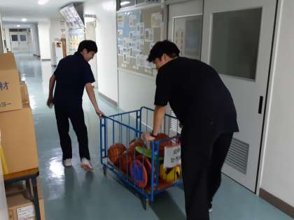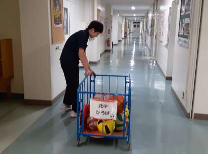 生徒会と北中ひろばがタイアップして道具類を揃えました。
