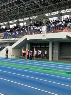 本日、世田谷区立中学校陸上競技大会が世田谷区総合運動場で開催されます。区内29校の生徒が参加します。本校では、23名の生徒がそれぞれの競技に挑戦します。それぞれの活躍を期待してます。写真は、開会式の様子です。
