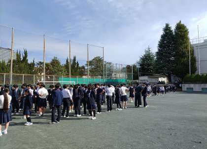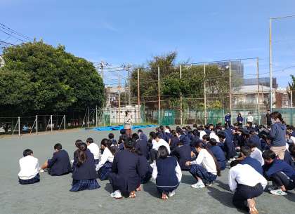 避難訓練は、教員のための訓練でもあります。速やかに人員点呼を行うことが、生徒の安全確保につながります。(副校長)