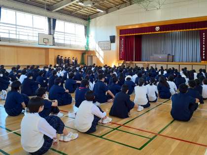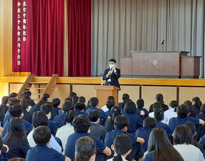 校長講話は、今週2年生が職場体験を行うことにちなんで、職場体験の心構えや自分に合った仕事を見つけることについて、仕事の多様化についてでした。
