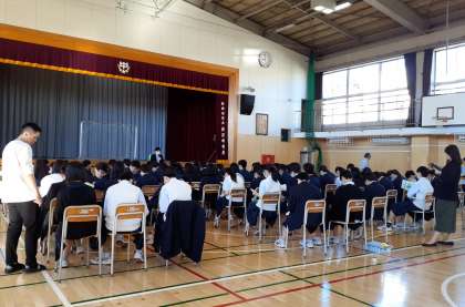 2年生は明後日から職場体験が始まります。 健康観察表に記入をしてから、最終確認を行いました。 (副校長)