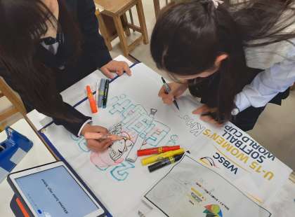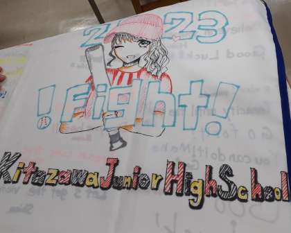 24日の第1回WBSC女子U15ソフトボールワールドカップ2023観戦に向けて、1年生の応援旗が完成しました。