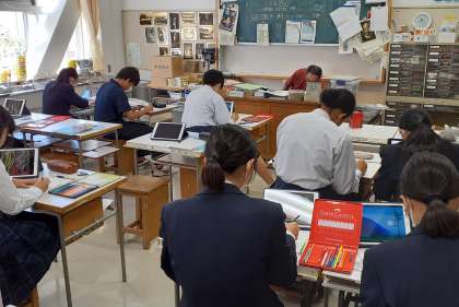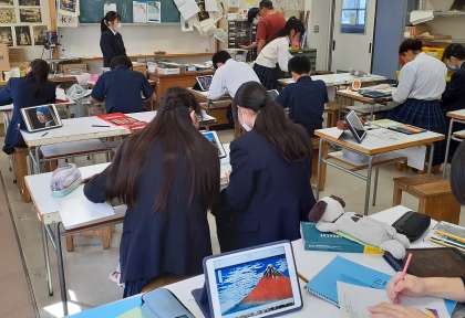 名画と同じ色合いを出すのに苦労しています。(副校長)