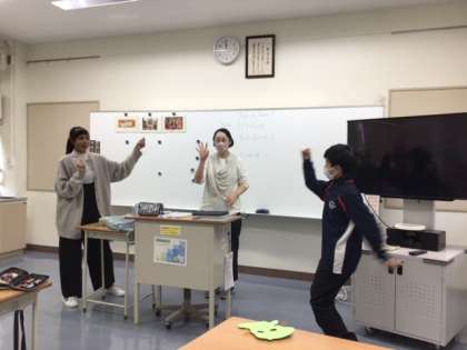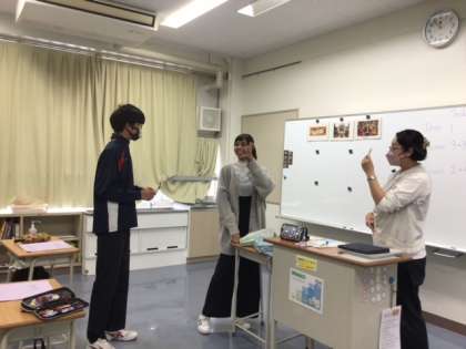 ハロウィンにまつわる単語を学び、先週、生徒が作ったハロウィンマスクを活用して「Trick or Treat ゲーム」をALT先生と共に行いました。
