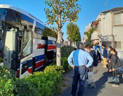 1年生が集まり始めました。 他学年の教員も見送りに来ています。(副校長)