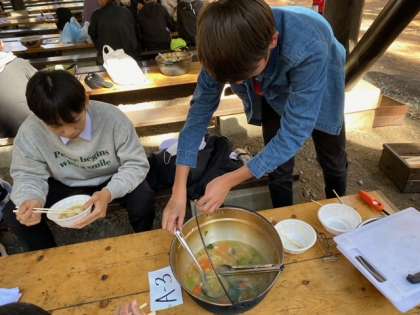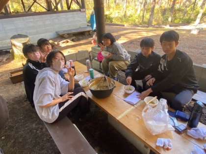 お昼ご飯に、自分たちで作ったほうとうをいただきました!おかわりをして、たくさん食べる姿も見られました。