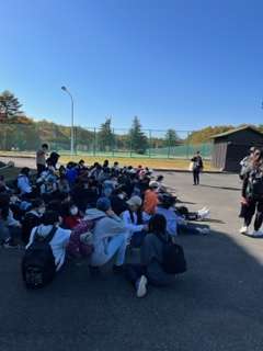 天気にも恵まれた氷穴、紅葉台のオリエンテーリング、予定より、1時間早く終了しました。これからバスに乗って学校に向かいます。