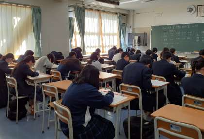 1年生 理科 解答中の様子です。頑張っていますね。(副校長)