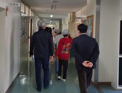 下北沢小学校のくるみ学級の皆さんが来校されました。 これから、おおぐま学級との交流会が始まります。(副校長)