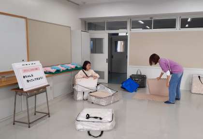 3年生の家庭科授業のために北沢おせっかいクラブの皆さまが準備を始めています。